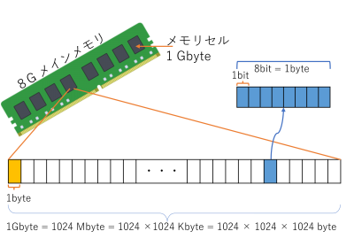 メモリの記憶素子には、並び順で番号づけがされており、この番号をアドレスと呼んでいる。