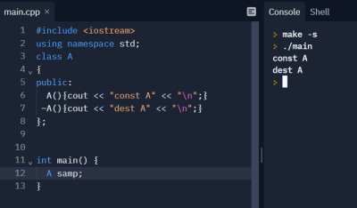 2. インスタンスが消滅するときデストラクタが~A()呼ばれる。