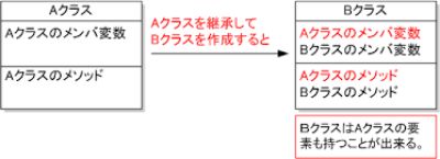 このときに、生成されたclass Bのインスタンスは丸々class Aを含んでいます。