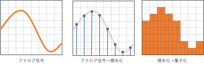 - 標本化が細かいほど、詳細に元のデータを表すことができる、が、データ量は増える