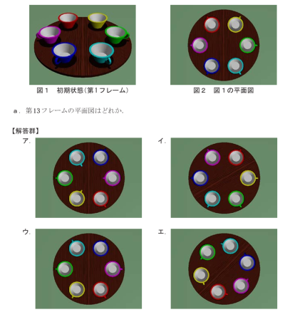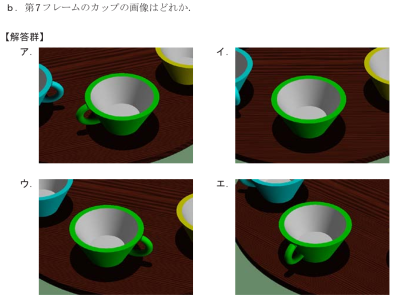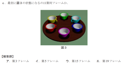 (前の問題から、カップの回転周期は4フレーム=1周と判明)