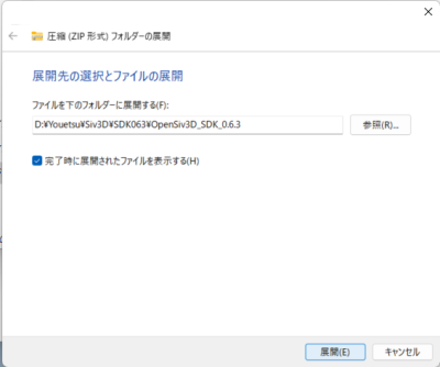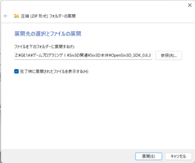 - 展開先を自分のフォルダのSiv3DSDKにする