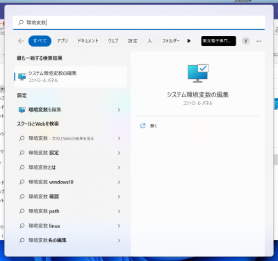 環境変数の設定ダイアログが出てくるので、下部の「環境変数(N)…」をおす