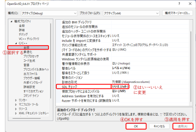 - 「ディレクトリの参照で、“D:\各自のフォルダ名\Siv3D\SDK063\OpenSiv3D_SDK_0.6.3\OpenSiv3D_SDK_0.6.3”を指定」
